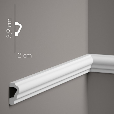 Listwa ścienna MD255 marki Mardom Decor łączy współczesność z klasycznym wzornictwem. Dzięki dekoracyjnemu charakterowi oraz średniej wielkości znajdzie zastosowanie w wielu aranżacjach. Delikatne zaokrąglenia tworzą nowoczesny, a zarazem subtelny design. Mierząca 3,9 cm wysokości listwa dekoracyjna MD255 pozwoli urozmaicić wygląd ścian, poprzez formowanie ozdobnych ram lub dzielenie powierzchni.