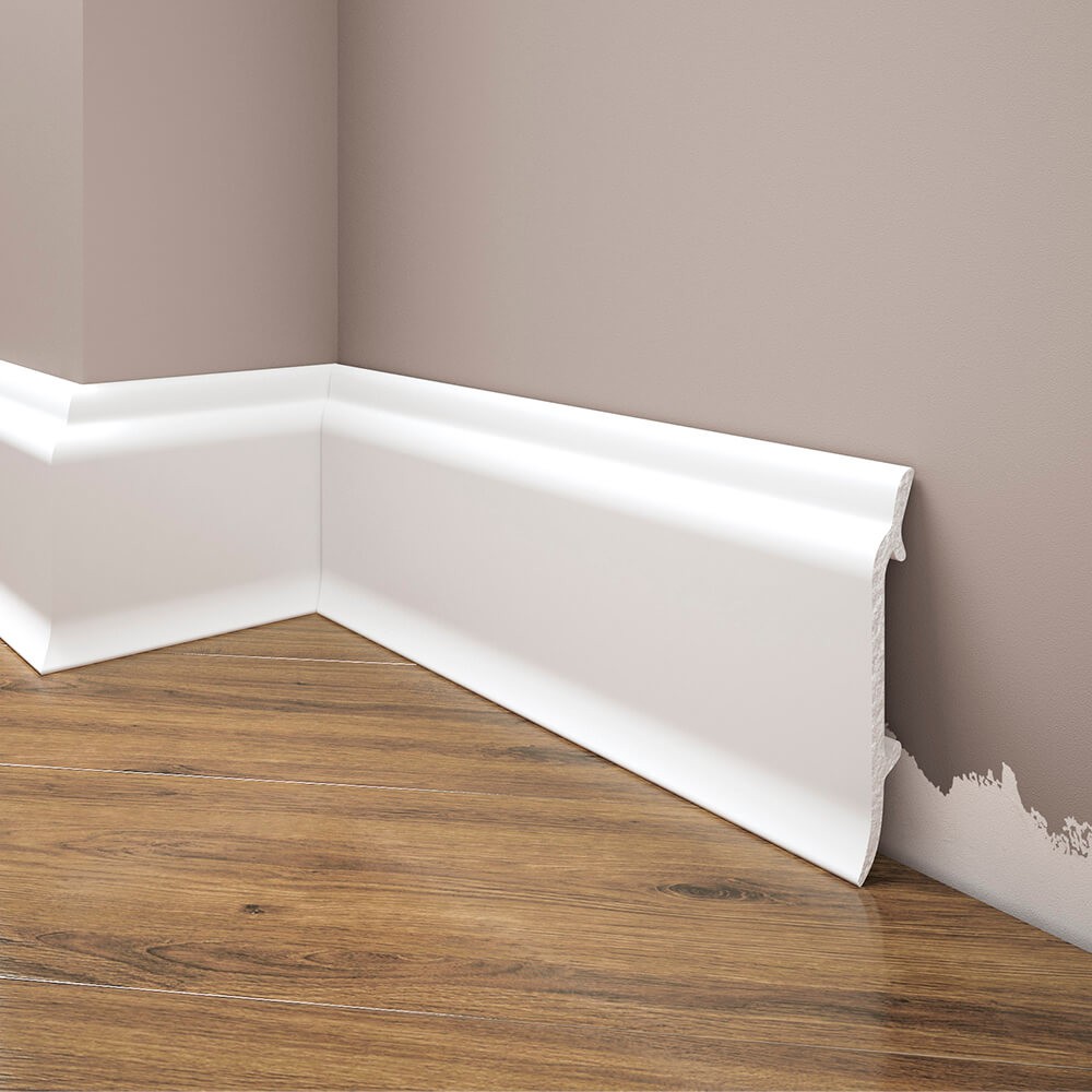 Nowoczesna listwa przypodłogowa maskująca biała LMDF-04 8 cm - Creativa