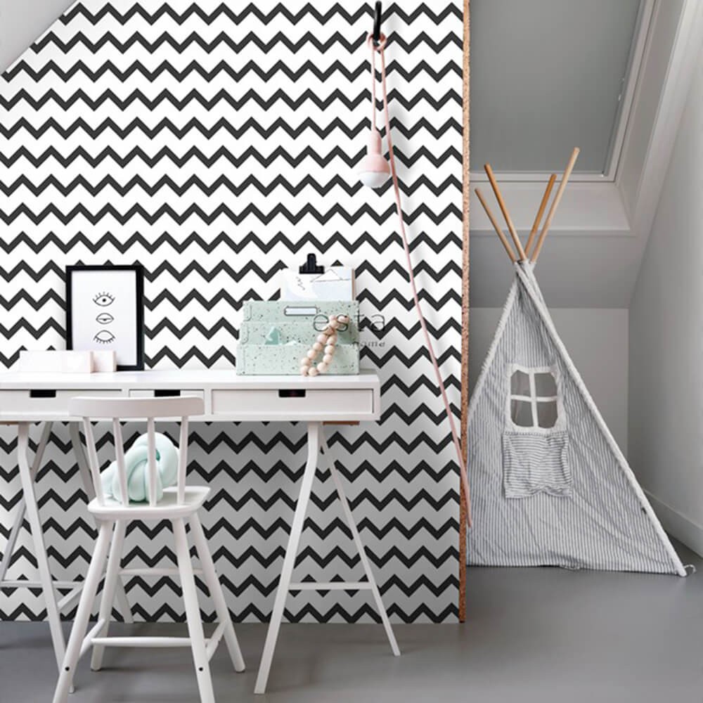 Tapeta w zygzak 139115 to zaprojektowana w stylistyce klasycznego art deco tapeta dekoracyjna, która znajdzie uznanie nie tylko wśród zwolenników modernistycznych i minimalistycznych aranżacji. Biała tapeta z czarnym zygzakiem typu chevron - znanym również jako francuska jodełka - będzie doskonałym dopełnieniem eleganckiego salonu czy nowoczesnego biura, sprawdzi się również w innych pomieszczeniach, także tych aranżowanych w modnym stylu skandynawskim. Symetryczna tapeta 139115 to część linii Black & White with a splash of gold od Esta Home - propozycji odznaczających się m.in. dużą odpornością na wpływ różnorakich czynników zewnętrznych, a co za tym idzie, długookresowym zachowaniem pełni swoich walorów.